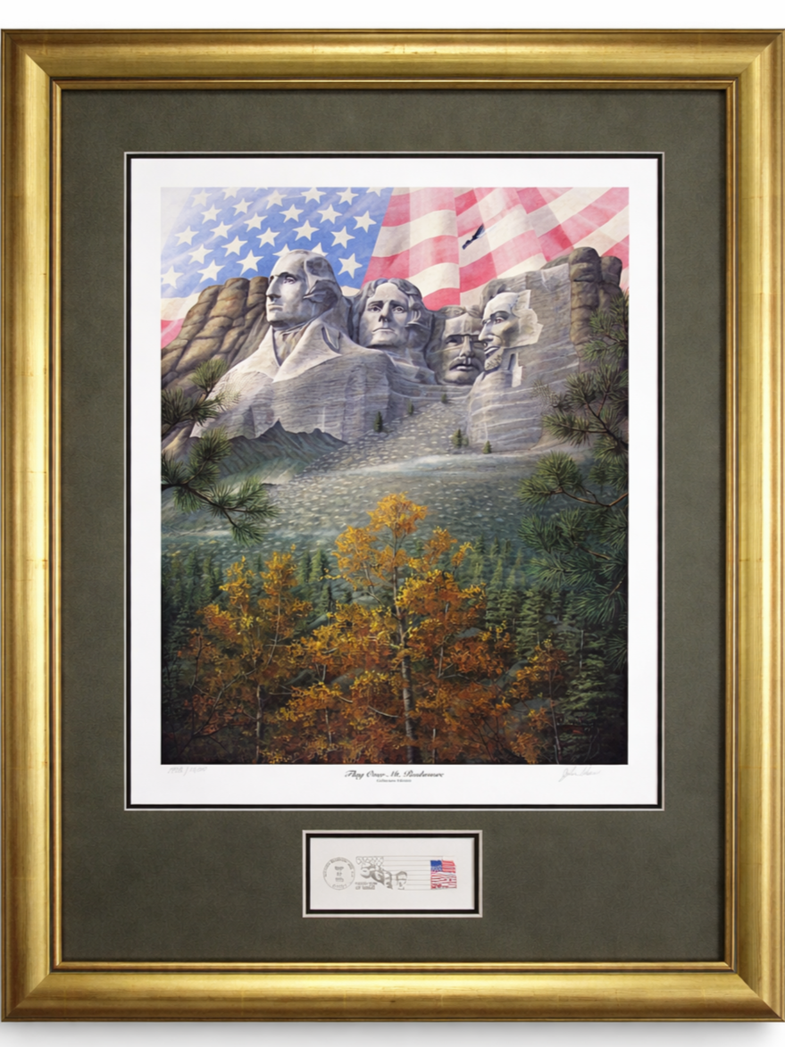 5 Flag Over Mt. Rushmore – Signed and Numbered Lithograph with First Day Issued Cancelled Stamp